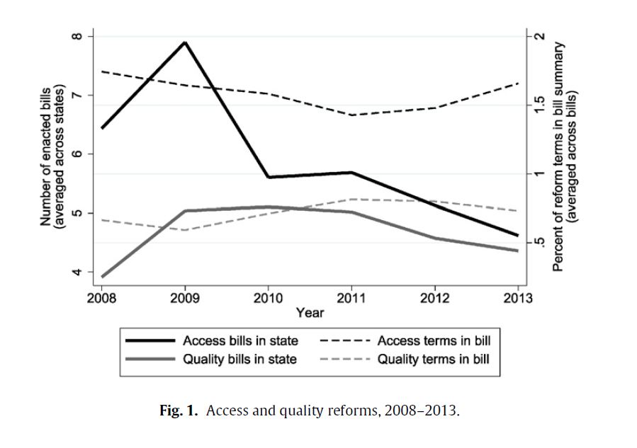 Education reforms come in two general types: access and quality reforms. Access reforms provide more educational opportunities, while quality reforms improve educational effectiveness. This paper investigates empirically the factors affecting the enactment of these two kinds of reforms in public primary and secondary education. By using a novel dataset of U.S. state legislation from 2008 to 2013, we find that both access and quality reforms are more likely in times of bad educational outcomes. Moreover, this is the first study documenting that teachers' union strength correlates positively with access reforms and negatively with quality reforms. Our results also shed light on the way teachers' unions promote their political interests: both lobbying and contributions are effective at opposing undesired reforms, but contributions have an extra effect of influencing the enactment of desired reforms.